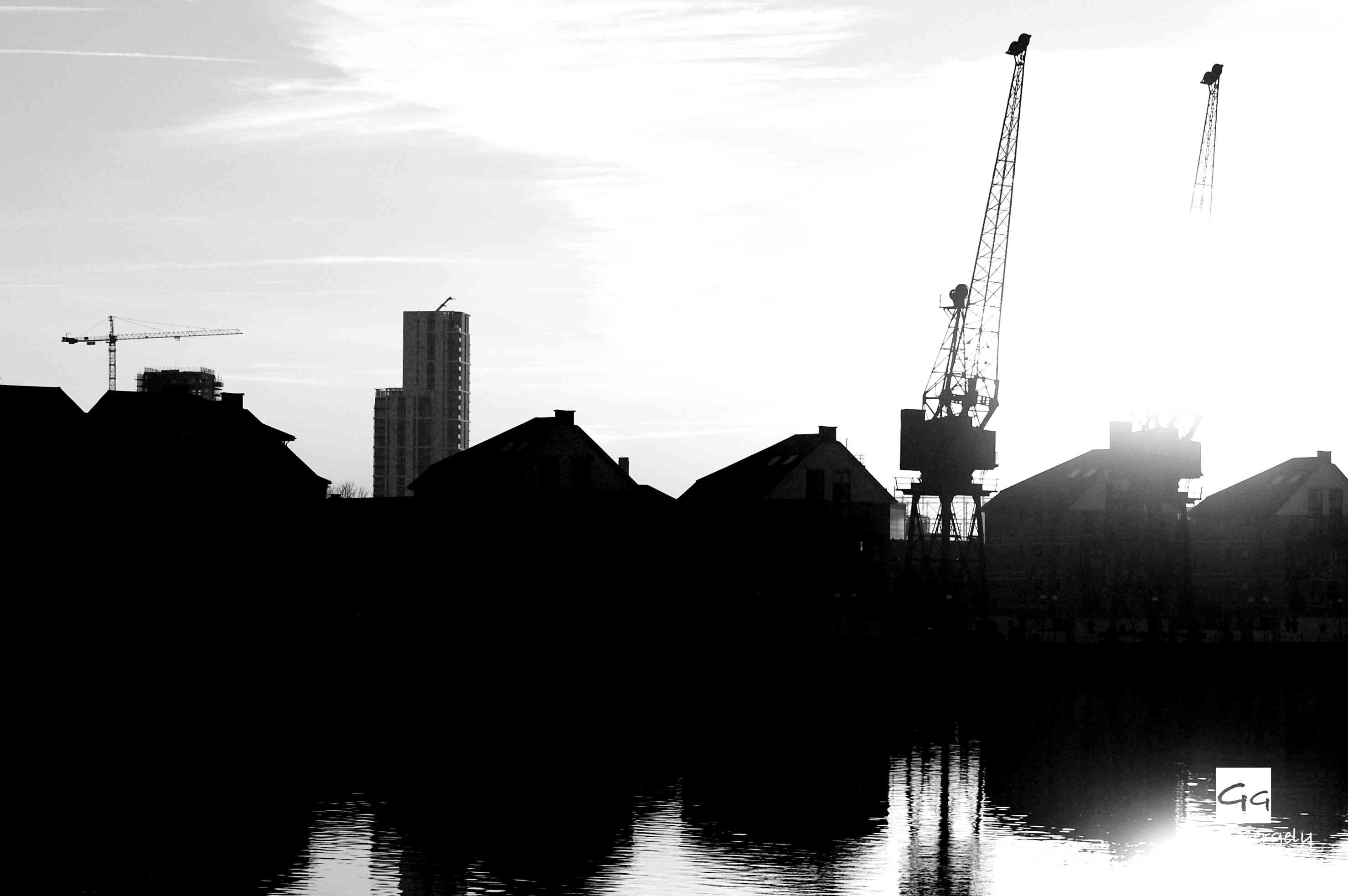 Cranes-and-houses-under-sunlight-London